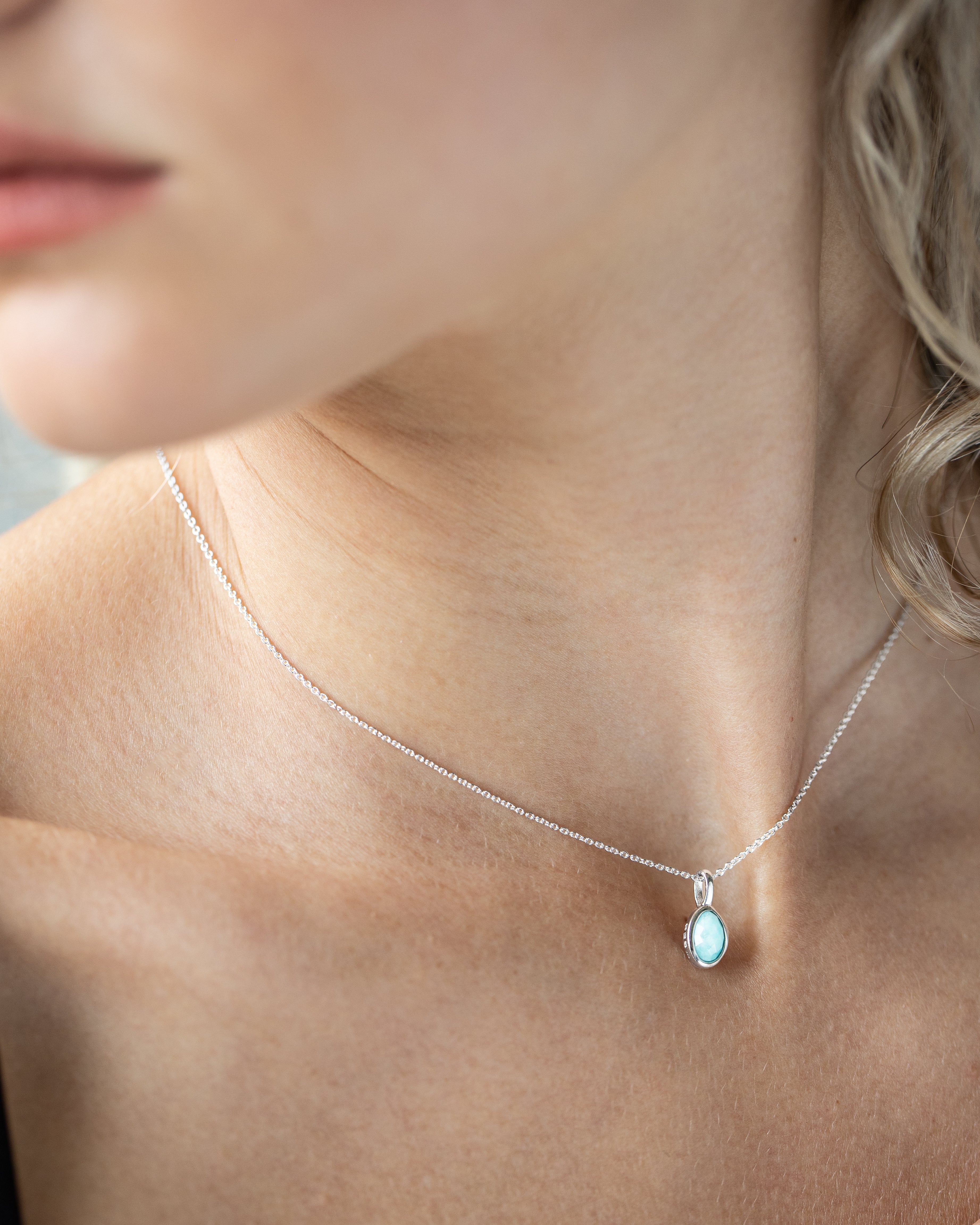 Stříbrný Amazon Queen náhrdelník spojují čistý, moderní design s nádherným kamenem v jemně modrozeleném odstínu. Amazonit má tu typickou calming energy a jeho měkký pastelový tón dodává šperku krásně něžný, ale zároveň výrazný barevný akcent.