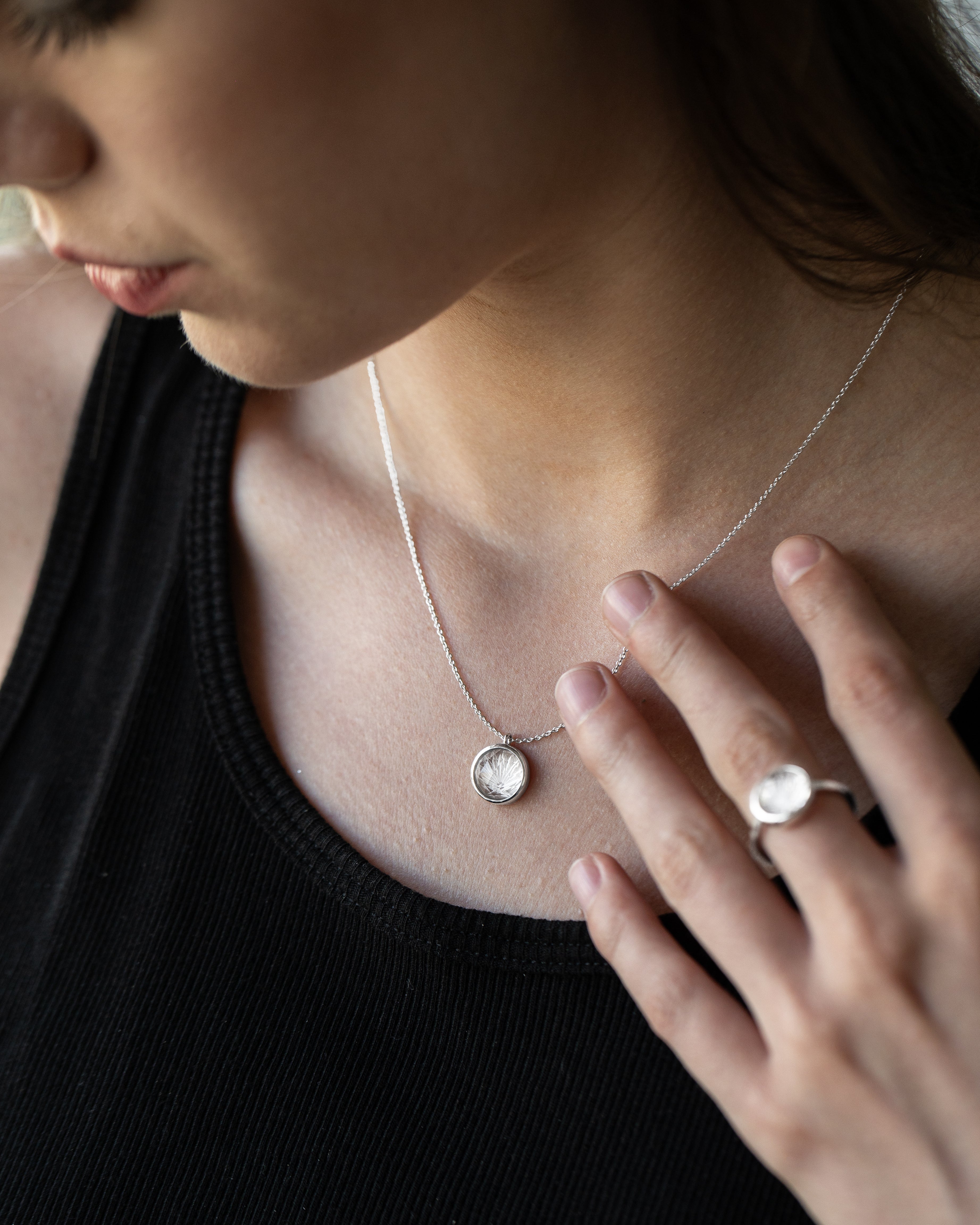 Stříbrný náhrdelník Aurora Essence s křišťálem, který působí jako malý kousek světla zachycený v šperku. Vyřezávaný motiv uvnitř kamene vytváří efekt jemného květu, díky kterému prsten působí originálně, svěže a trochu magicky. Je to ten typ doplňku, který dodá každému outfitu nenápadnou, ale krásně výraznou jiskru.