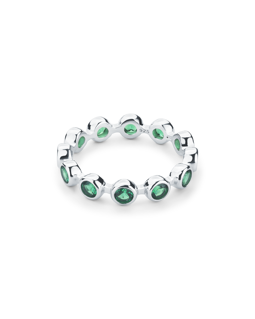 Stříbrný prsten Mirabelle, který si okamžitě získá pozornost svým hravým a svěžím designem. Kolem celého obvodu jsou zasazené zářivě zelené zirkony, které vytvářejí rytmus jemných odlesků a dodávají prstenu energii i lehkost. Moderní, čisté provedení z něj dělá kousek, který je výrazný, ale pořád krásně soft & chic.